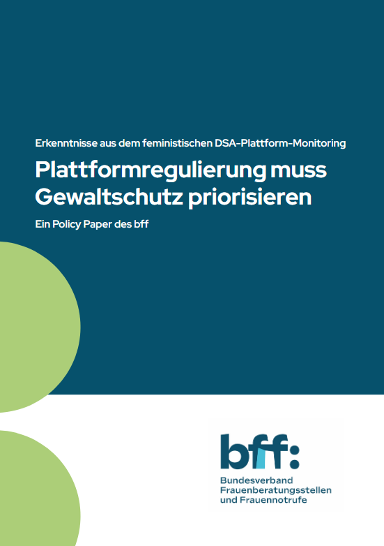 Plattformen entscheiden täglich darüber, wie sichtbar Gewalt ist – und wie gut Betroffene geschützt werden. Unser neues Policy Paper zeigt, wie große Online-Plattformen ihre Pflichten aus dem Digital Services Act (DSA) bislang unzureichend umsetzen, wenn es um (digitale) geschlechtsspezifische Gewalt geht.
